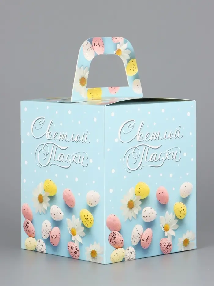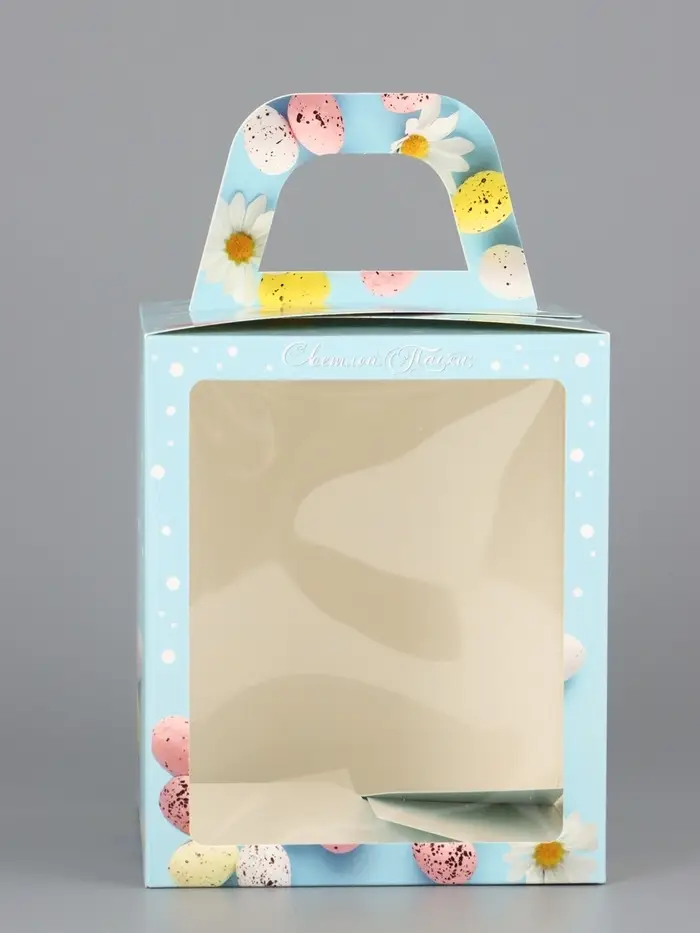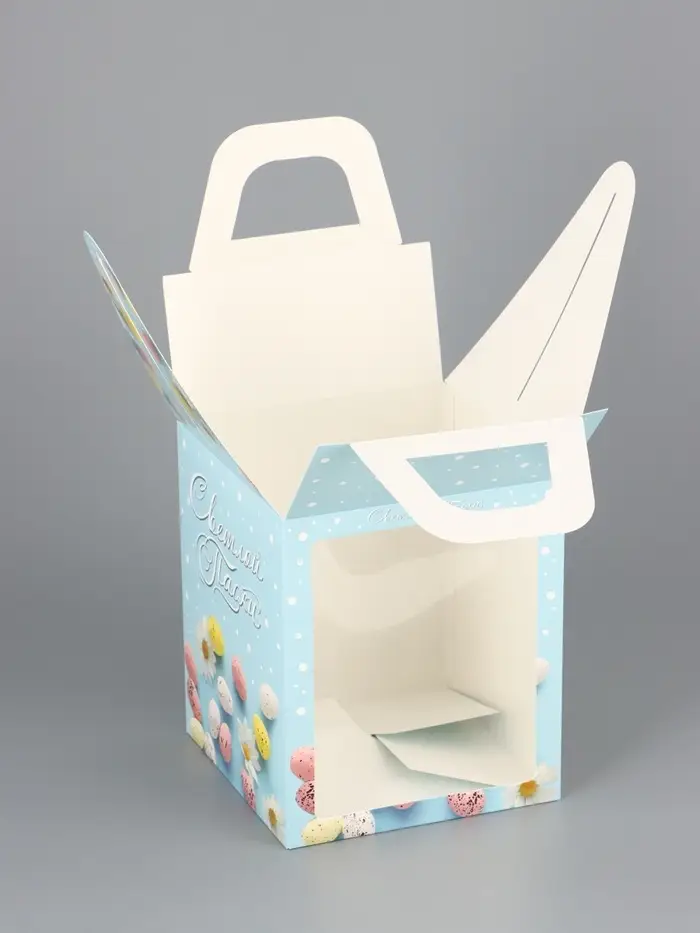 Коробка подарочная пасхальная с окном «Небесная голубая» 15×15×18 см