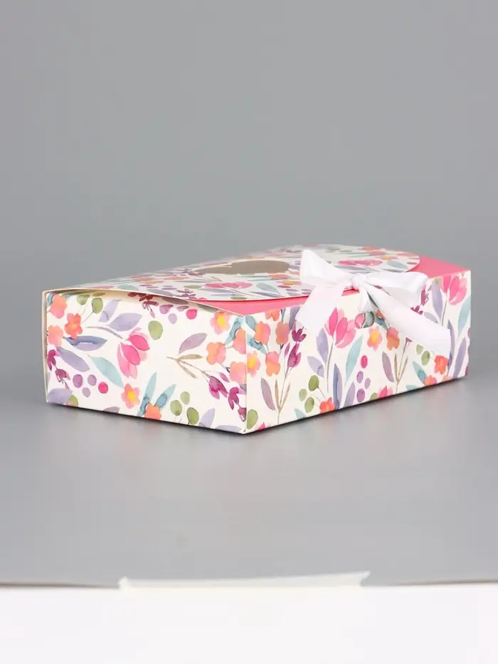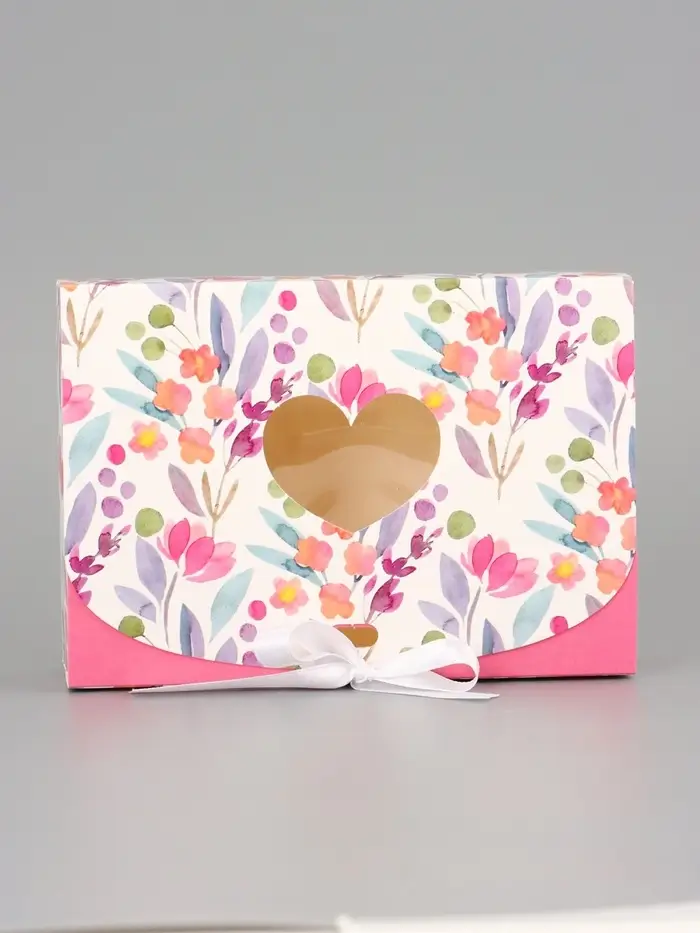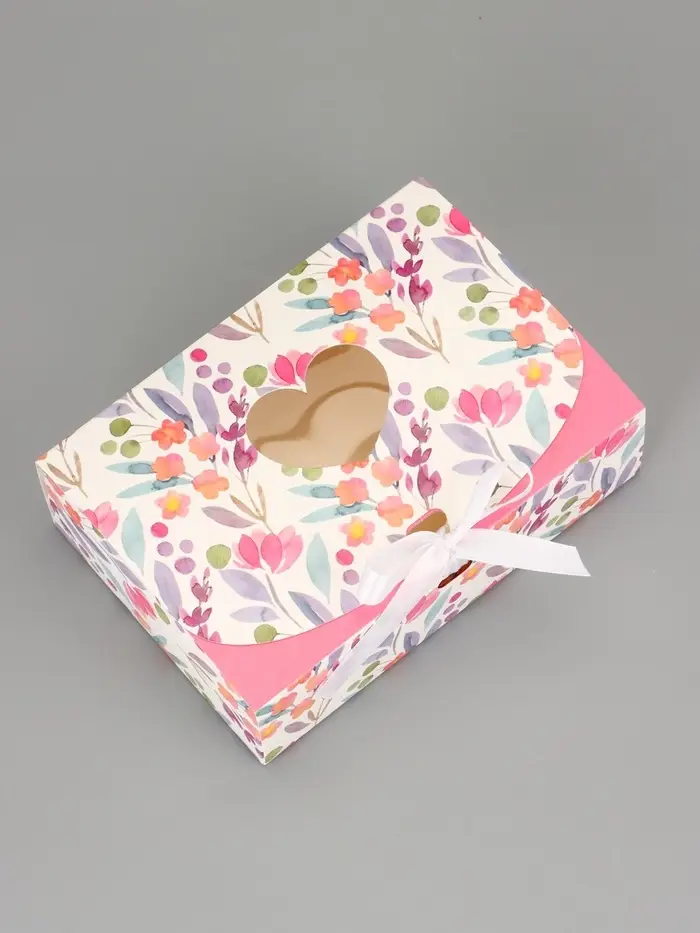 Подарочная коробка сборная с окном «Розовые цветы», 16.5×11, 5×5 см