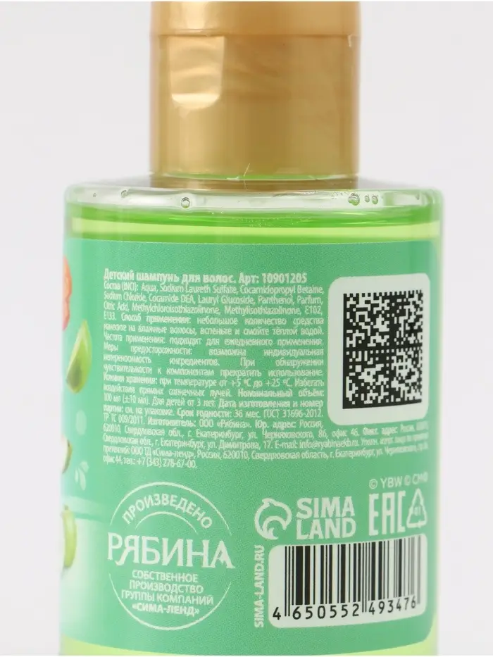 Детский шампунь, аромат яблочный взрыв, 100 мл, Чебурашка