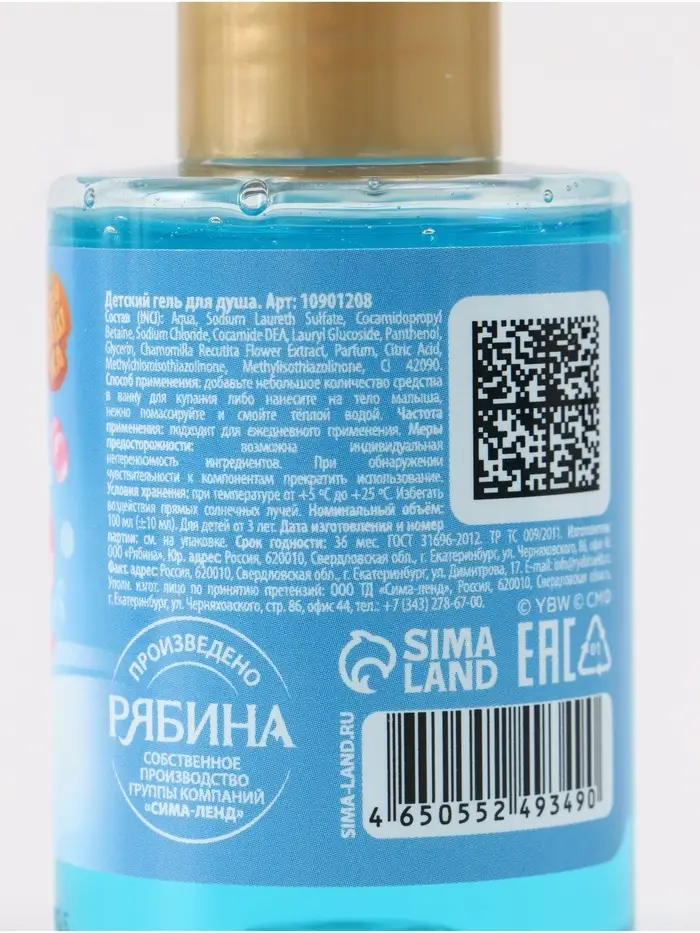 Детский гель для душа, аромат бабл-гам, 100 мл, Чебурашка