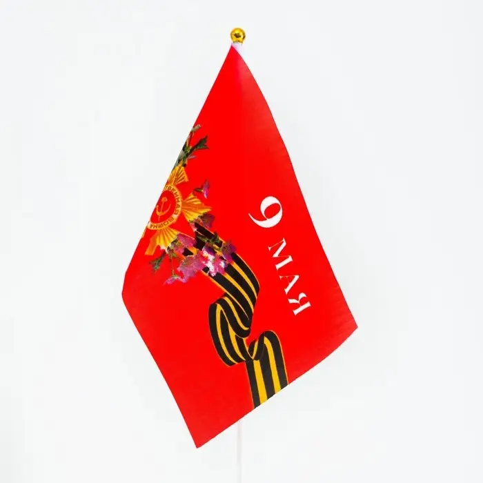 Флаг 9 Мая, 14×21 см, полиэфирный шелк, с древком