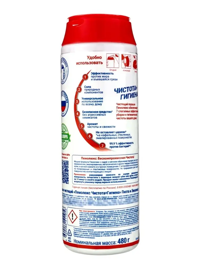 Чистящее средство ПЕМОЛЮКС порошок пэт Чистота + Гигиена 480г