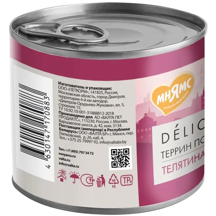 Влажный корм Мнямс Деликатес Паштет «Террин» из телятины/ветчины для собак всех пород 200 г