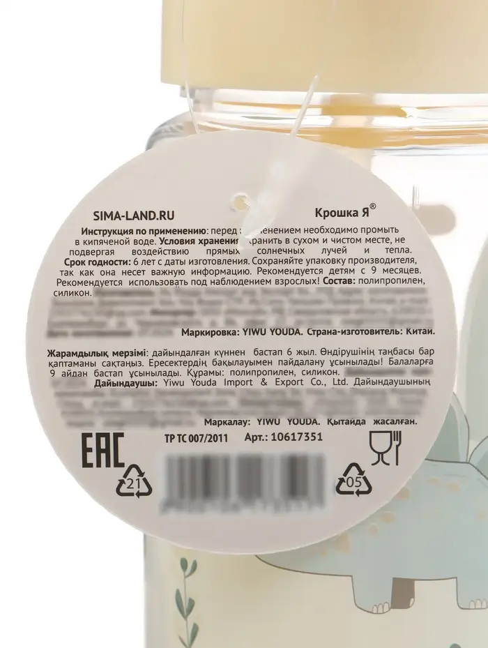 Поильник детский с трубочкой «Дино», 350мл., цвет бежевый Крошка Я