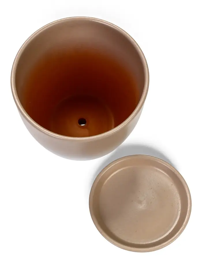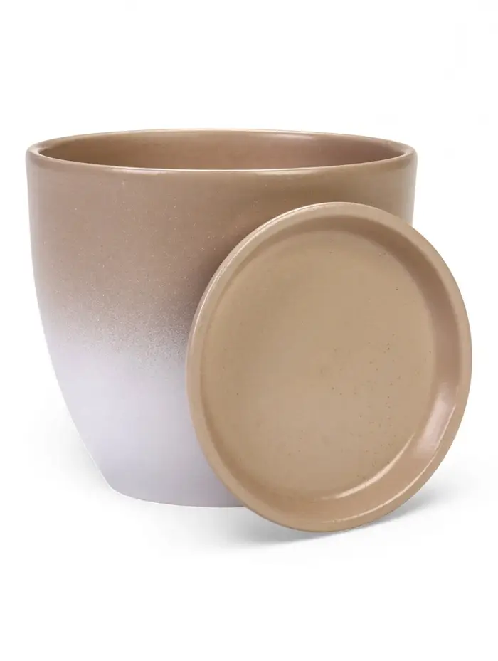 Горшок цветочный с поддоном 1,4 л, d15/h13 см капучино керамика, "Туман" (М)