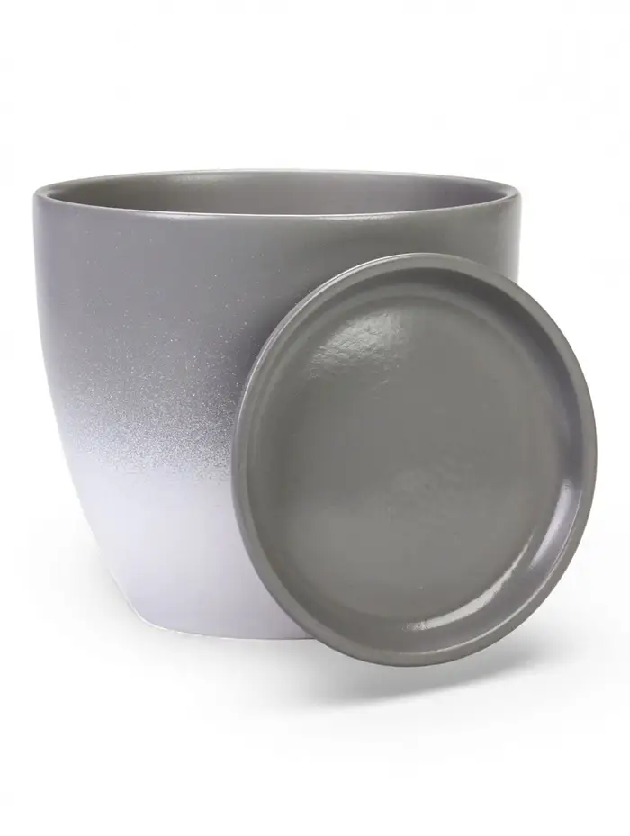 Горшок цветочный с поддоном 2,5 л, d18/h16 см серый керамика, "Туман" (М)