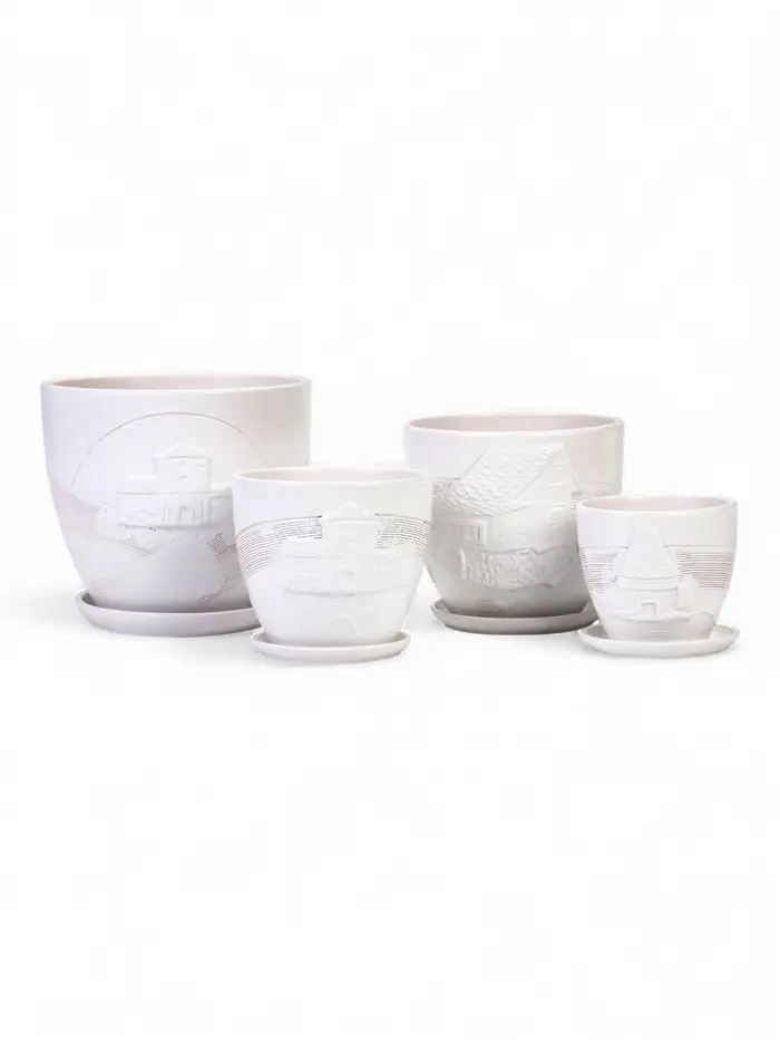 Набор горшков цветочный поддоном 4 шт 0,6 / 1,4 / 2,5 / 5 л керамика белый Галандия