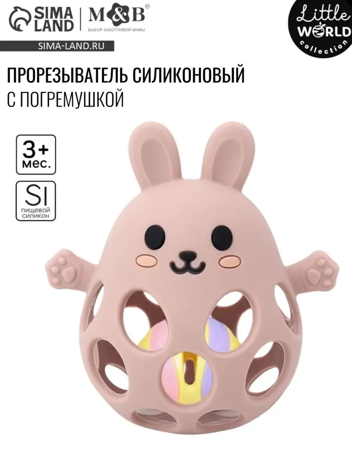 Прорезыватель погремушка M&B «Зайка», силиконовый, 12 см, розовый
