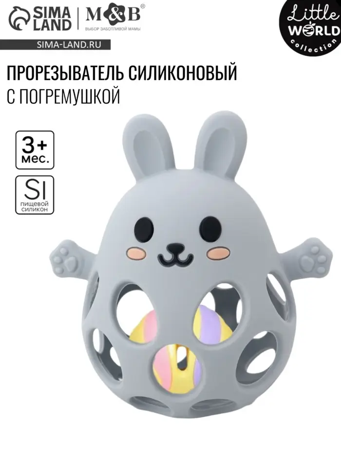 Прорезыватель погремушка M&B «Зайка», силиконовый, 12 см, серо-голубой