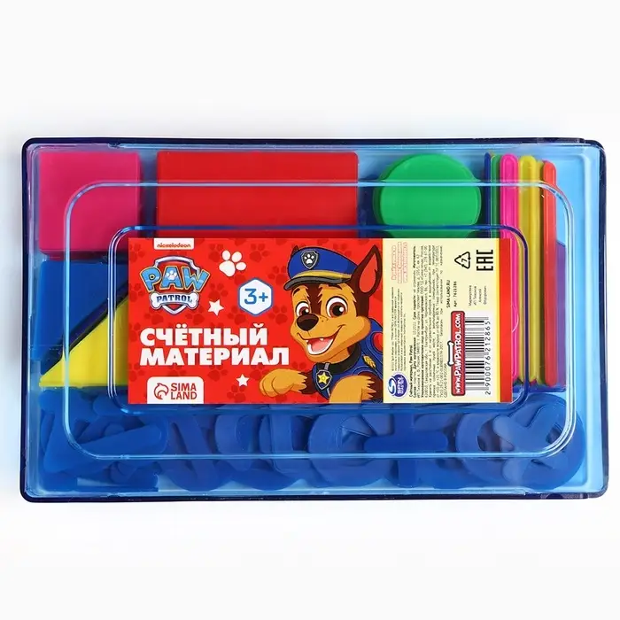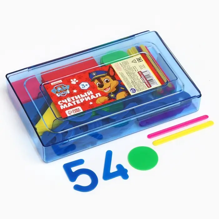 Касса цифр и счетных материалов «Учимся считать», 130 элементов, пластик, Щенячий патруль МИКС