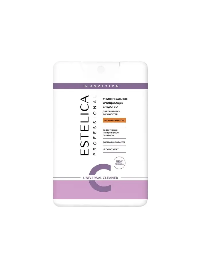 ESTELICA PROFESSIONAL, универсальное очищающее средство 20 мл — Гармония абрикоса — многофункциональное средство для гигиенической обработки рук и ногтей, а также рабочих поверхностей и маникюрных инструментов. Имеет приятный аромат абрикоса, быстро впитывается, не требует смывания и не сушит кожу, обеспечивая комфортное использование.