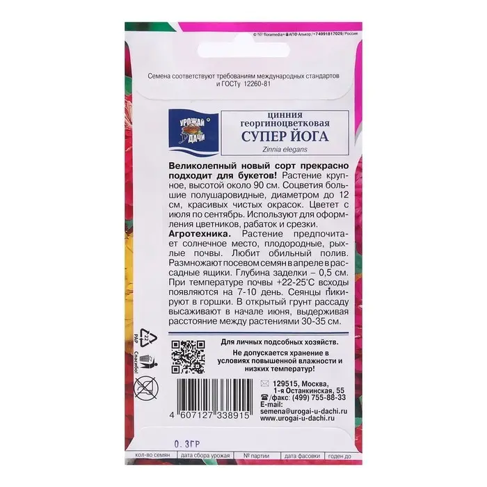 Семена цветов Цинния Смесь "Супер Йога", георгиновидная, 0,3 г