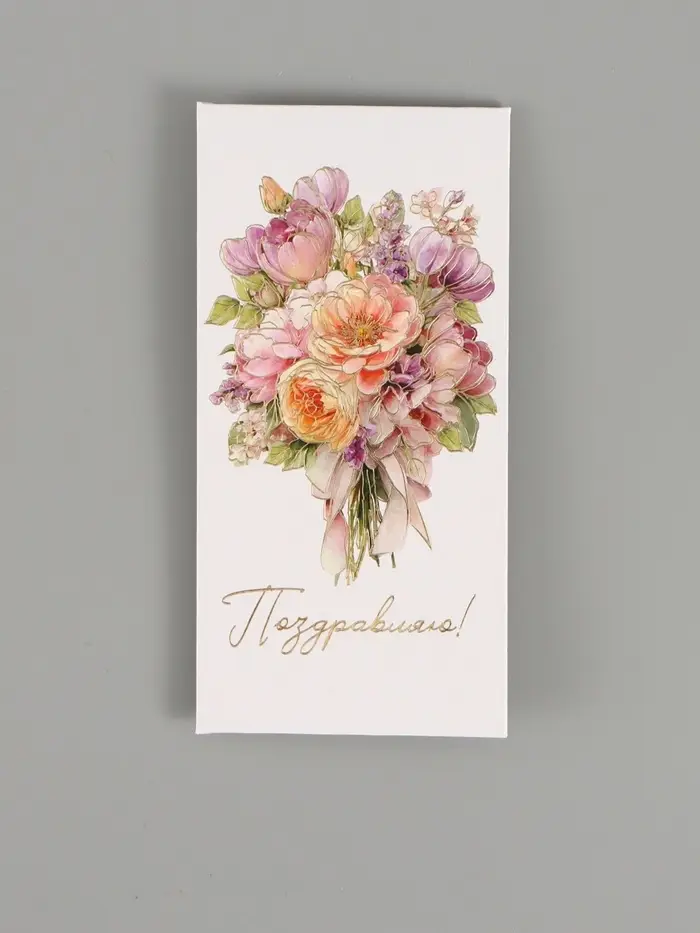 Конверт для денег «Поздравляю», цветы, тиснение, 16,5 х 8 см