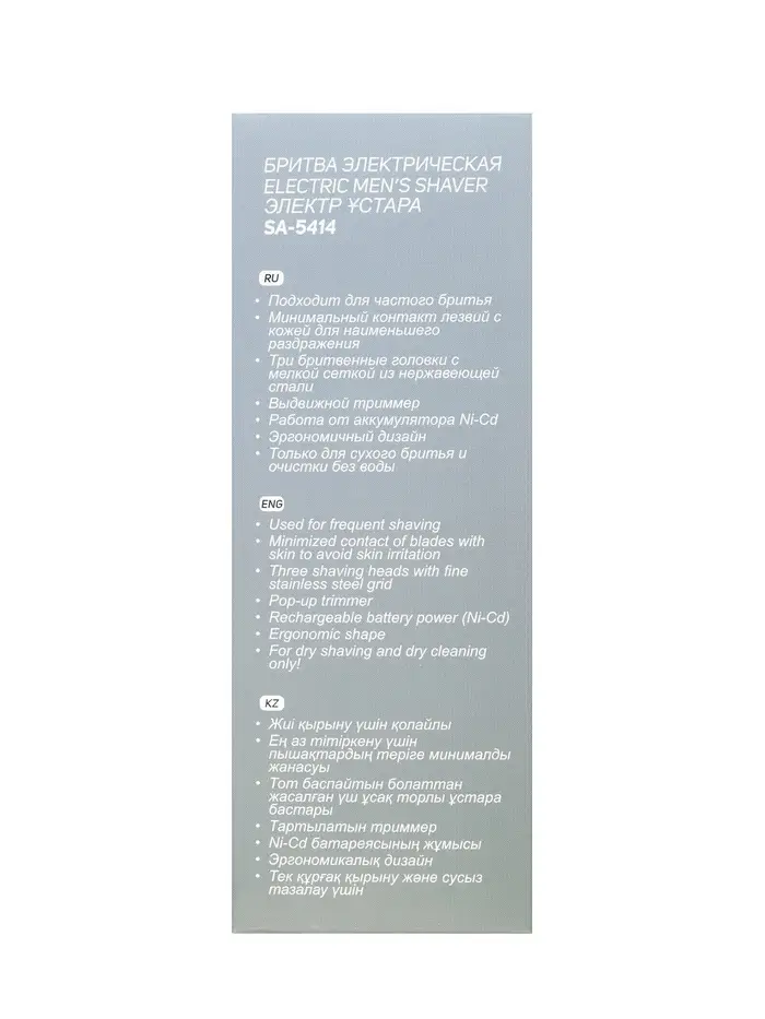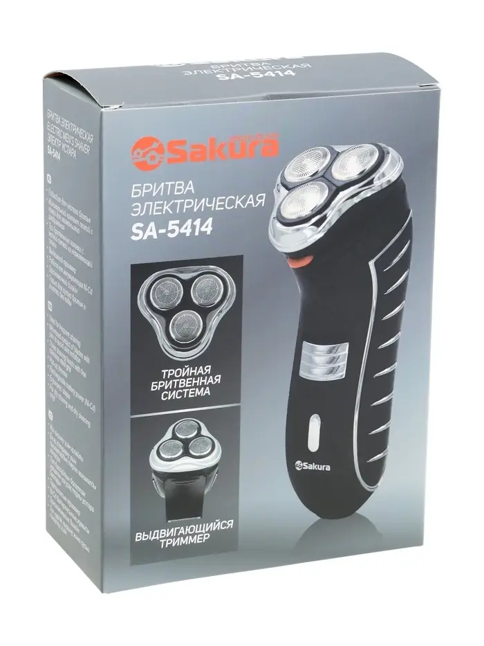 Электробритва Sakura SA-5414BK, АКБ, сеточная, 3 плавающие головки, триммер, чёрная