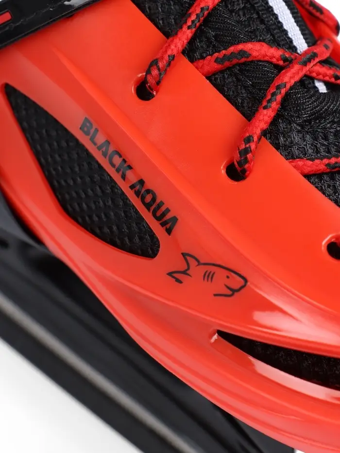 - Надёжная тройная фиксация – шнурки, бакля с трещоткой и плотная PU-липучка обеспечивают устойчивость стопы и уверенное скольжение.
