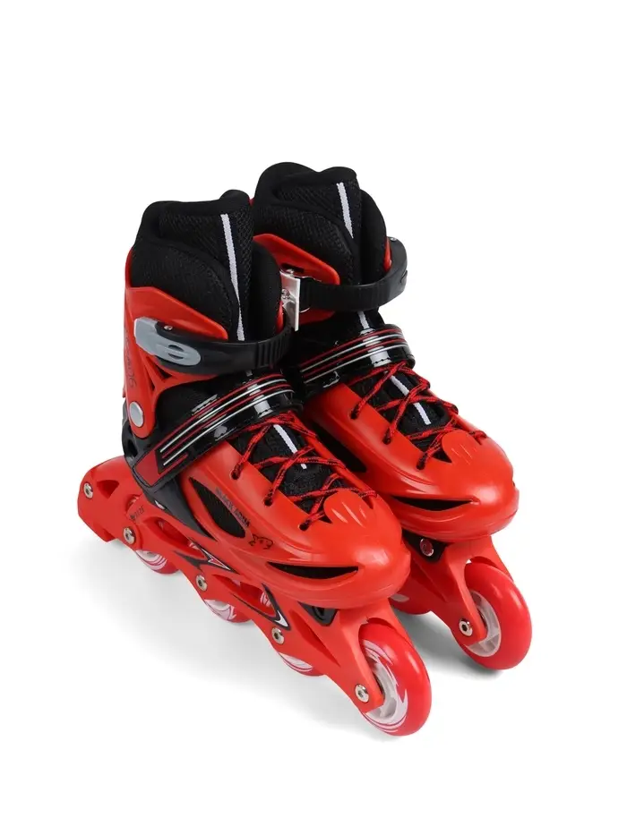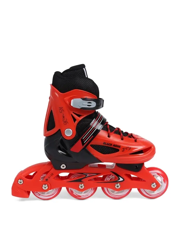 Коньки детские раздвижные BlackAqua, р. 30-33, для фитнеса, с роликовой платформой, красные, чёрные