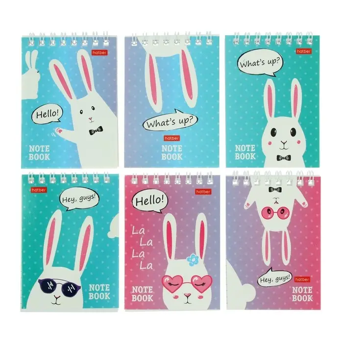 Блокнот А7, 40 листов на гребне "Прикольные зайцы", обложка мелованный картон
