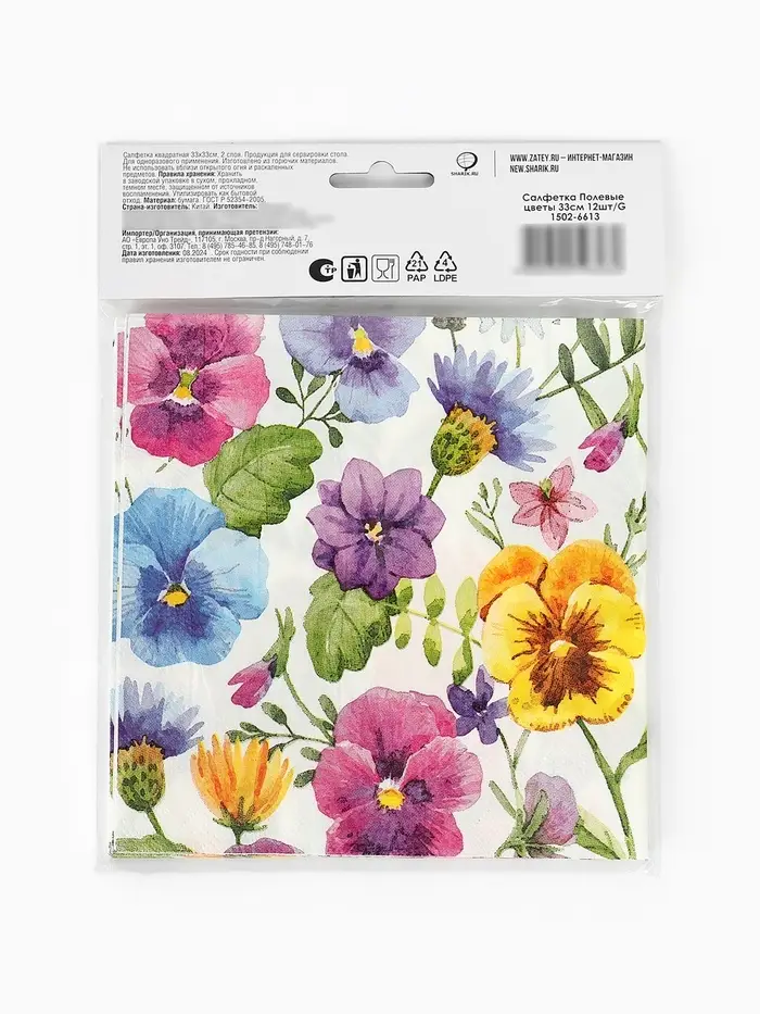 Салфетки бумажные двухслойные «Полевые цветы», 33 х 33, 12 шт