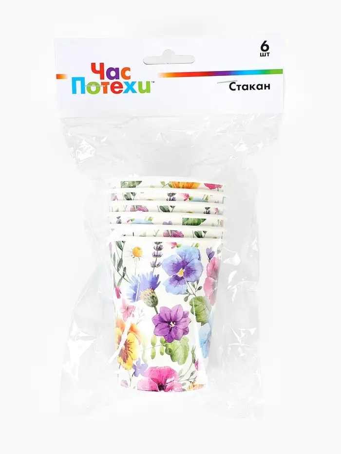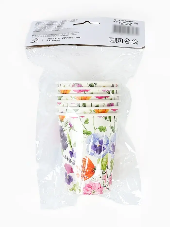 Стакан бумажный одноразовый «Полевые цветы», 250 мл, 6 шт