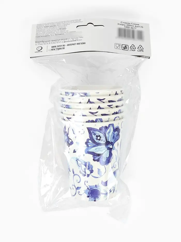 Стакан бумажный одноразовый «Синие Узоры», 250 мл 6 шт