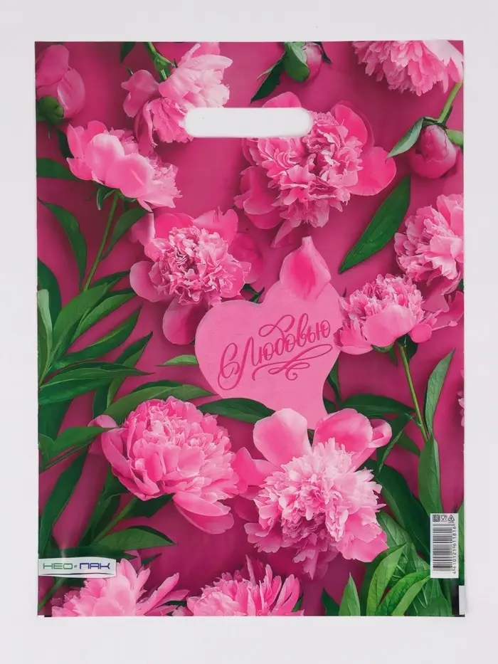 Пакет "Розовые пионы , полиэтиленовый с вырубной ручкой 30х40 см, 60 мкм