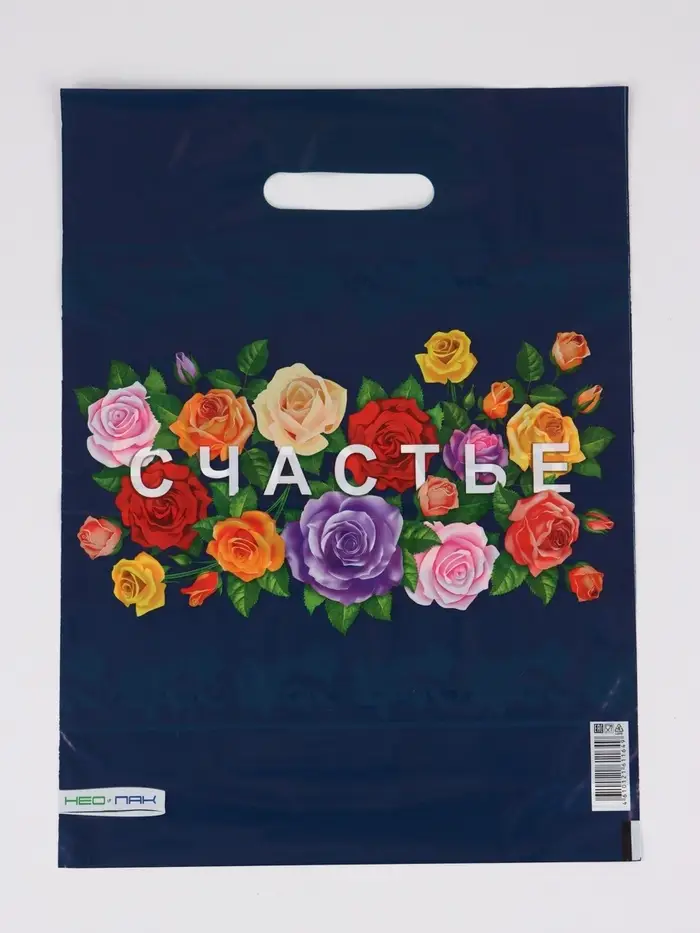 Пакет "Счастье, полиэтиленовый с вырубной ручкой 30х40 см, 60 мкм