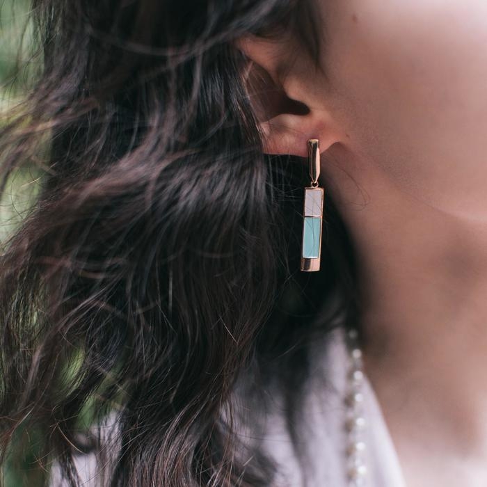 Серьги GEOMETRY «Прямоугольник», позолота, цвет розово-бирюзовый
