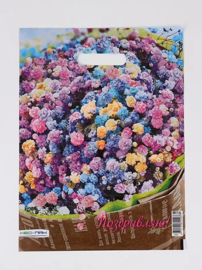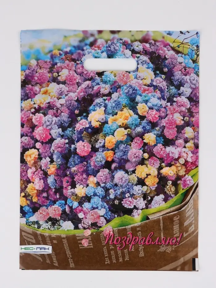 Пакет "Райский букет, полиэтиленовый с вырубной ручкой 30х40 см, 60 мкм
