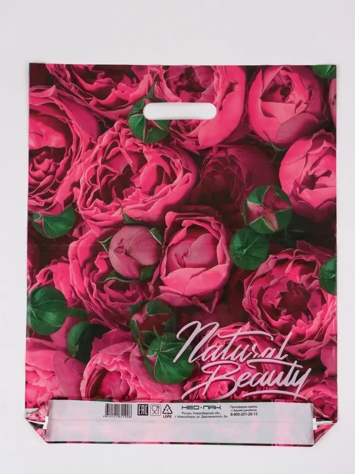 Пакет "Розовые бутоны, полиэтиленовый с вырубной ручкой, 38х45 см, 60 мкм