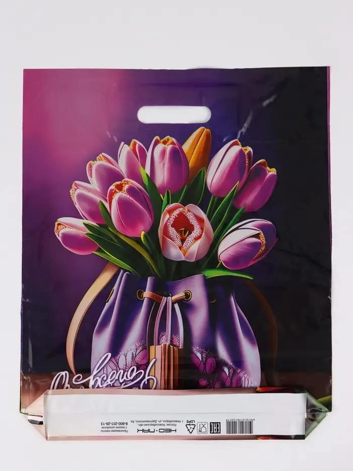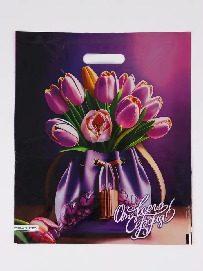 Пакет "Сумочка, полиэтиленовый с вырубной ручкой 38х45 см, 60 мкм