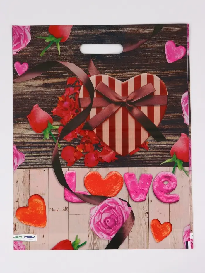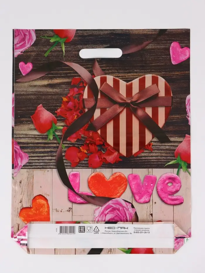 Пакет "Сердечки, полиэтиленовый с вырубной ручкой 38х47 см, 60 мкм