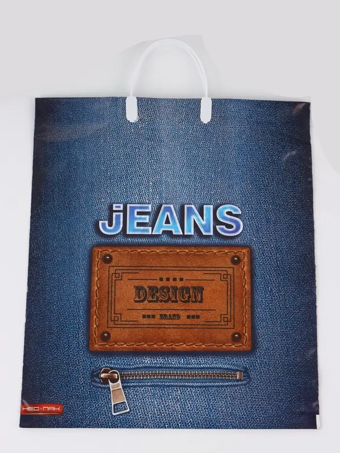 Пакет "Джинс лейбл, полиэтиленовый с вырубной ручкой, пласт. 38х44 см, 90 мкм