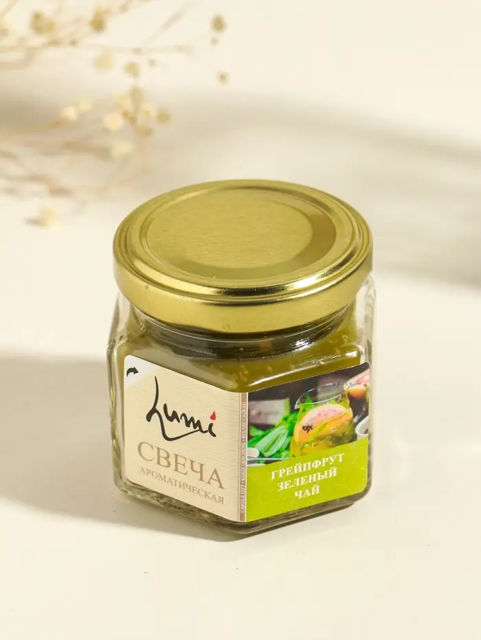 Свеча ароматическая в банке 70 гр воска, грейпфрут+зелёный чай