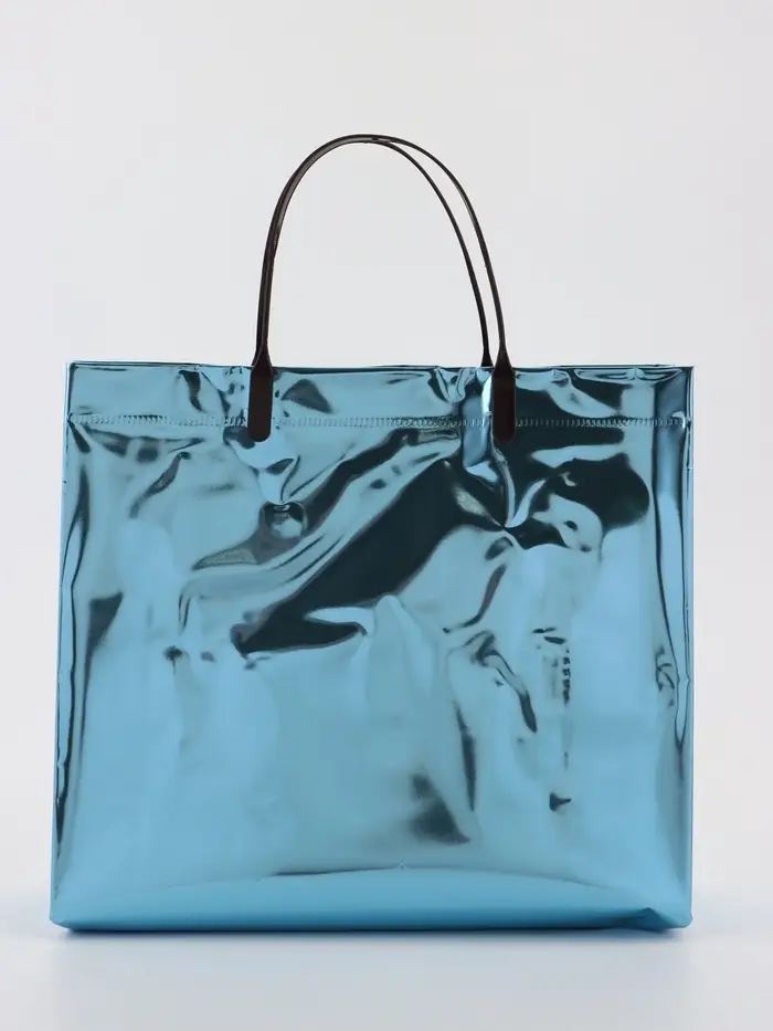Пакет подарочный ПВХ, голография, голубой, пластиковая ручка, 26×22.5×10 см