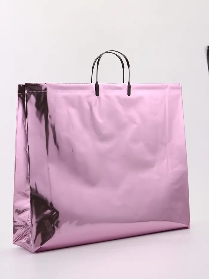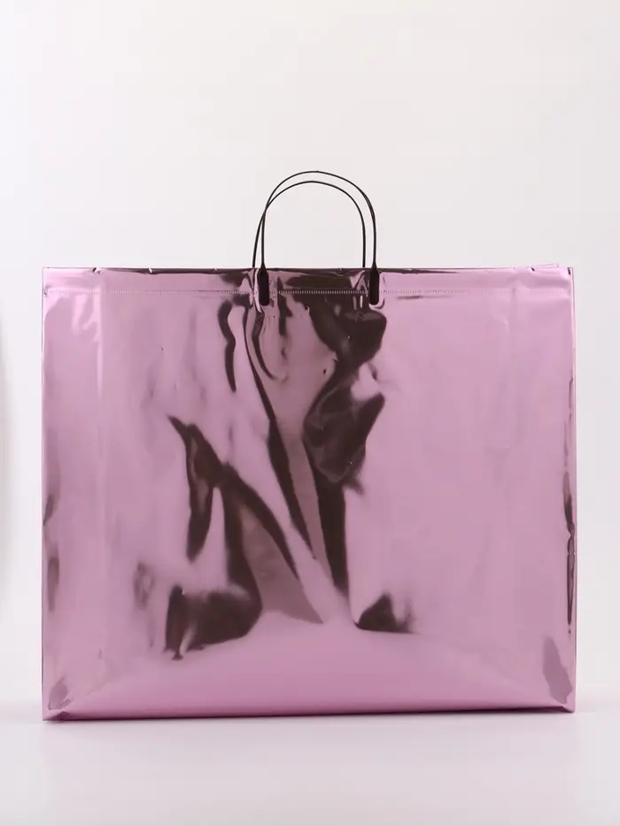 Пакет подарочный ПВХ, голография, розовый, пластиковая ручка, 50×42×12 см