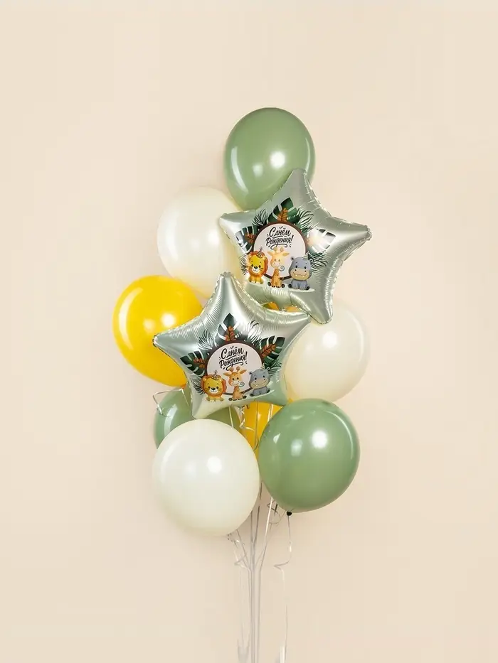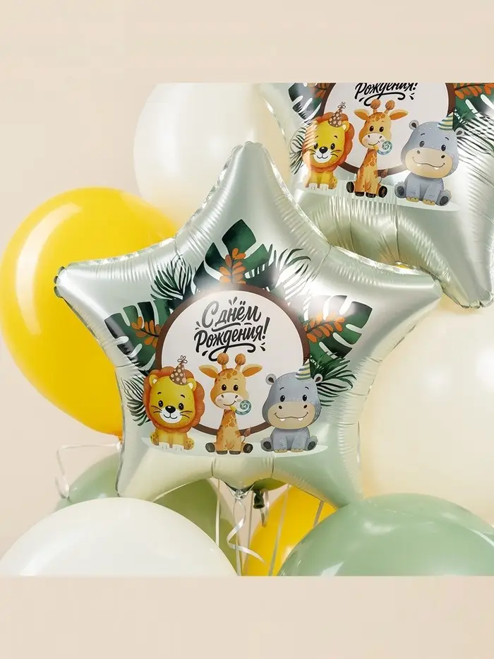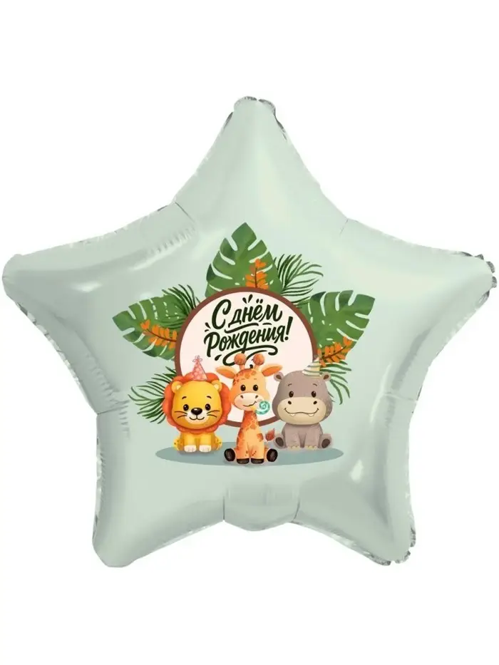 Воздушный шар фольгированный 19" «Весёлые зверята. Звезда», 5 шт.