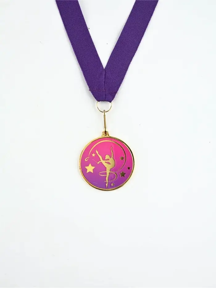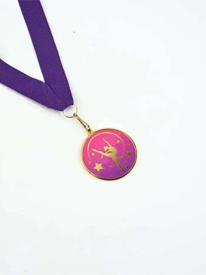 Медаль с уф-печатью "Гимнастика", диам. 5 см. Цвет зол. С лентой