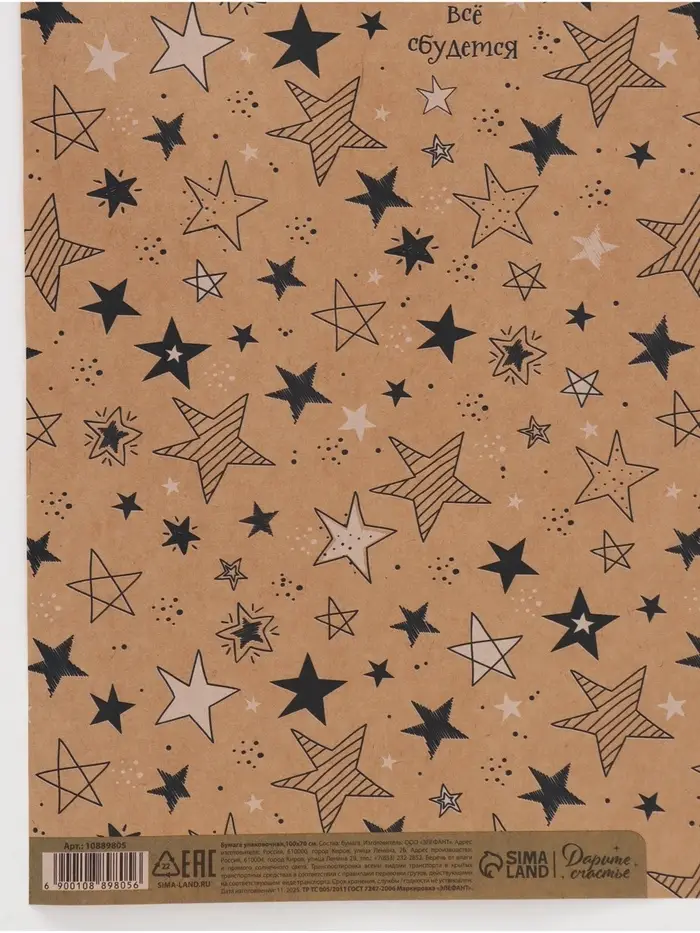 Бумага упаковочная крафтовая «Звёзды», 70 × 100 см