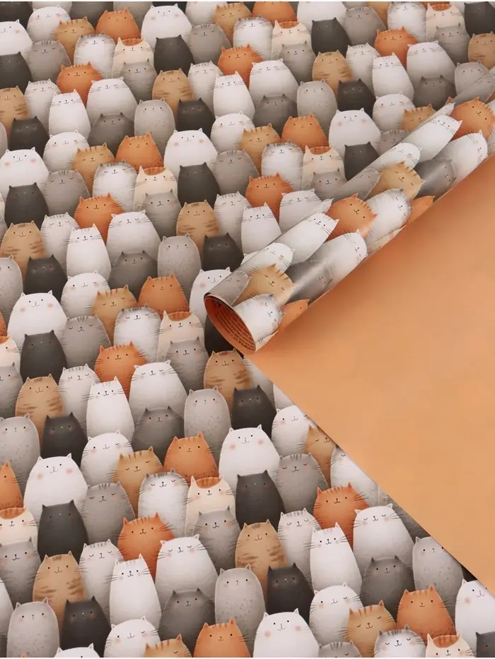 Бумага упаковочная глянцевая двухсторонняя «Коты», 70 × 100 см