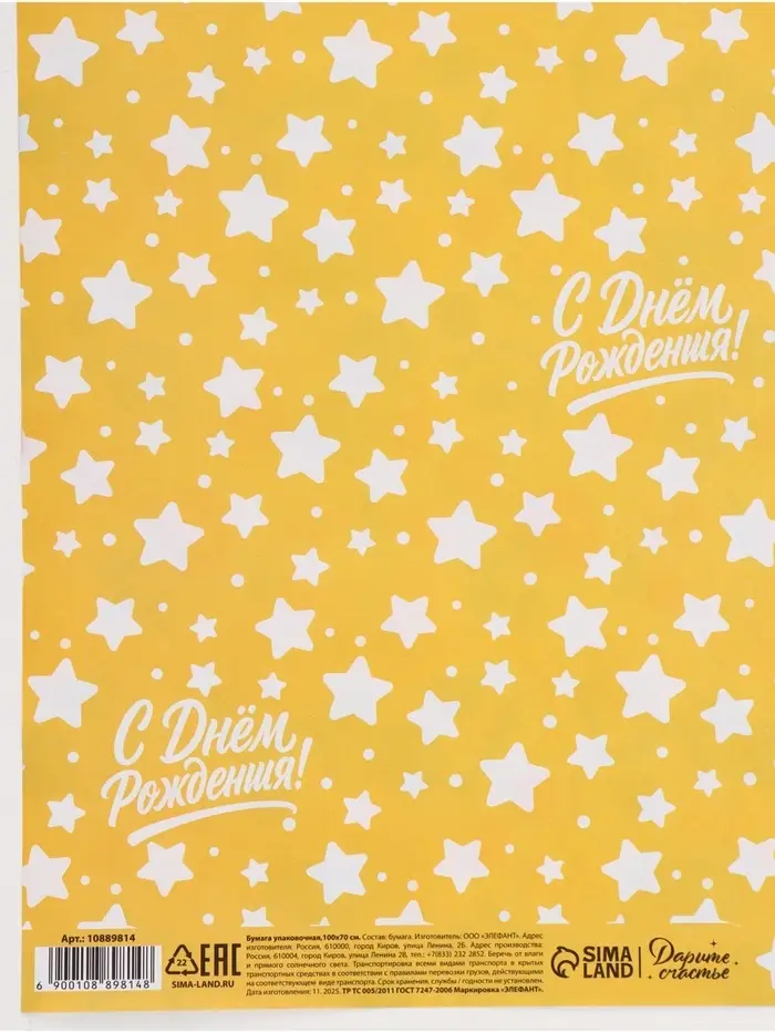 Бумага упаковочная глянцевая двухсторонняя «Праздник», 70 × 100 см