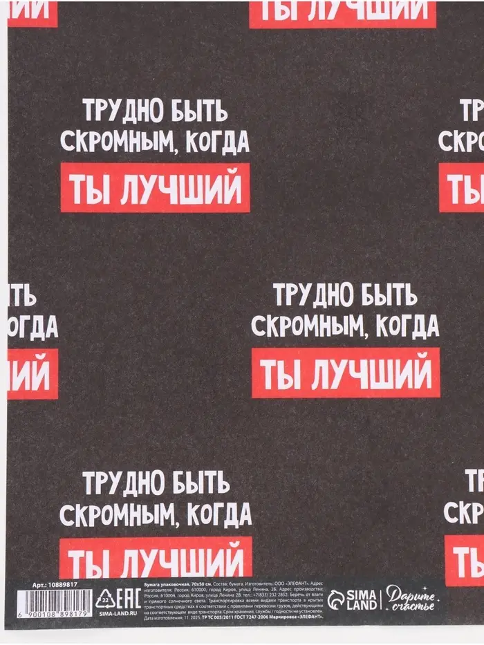 Бумага упаковочная крафтовая «Лучший», 50 × 70 см