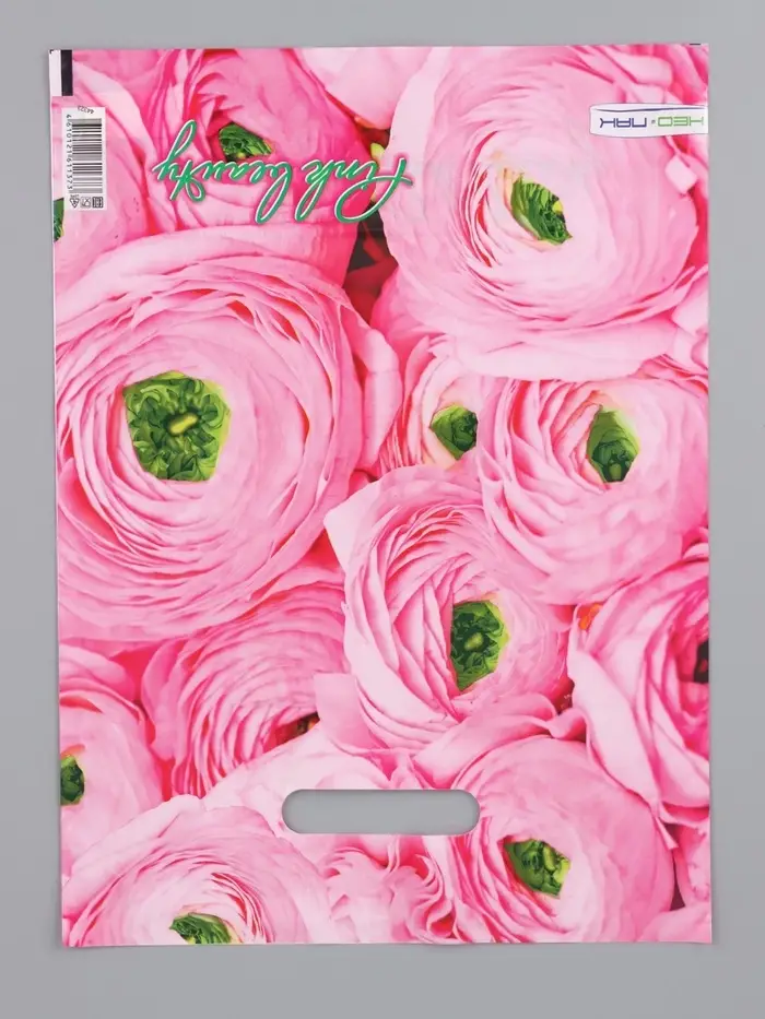 Пакет "Розовый букет, полиэтиленовый с вырубной ручкой 30х40 см, 60 мкм
