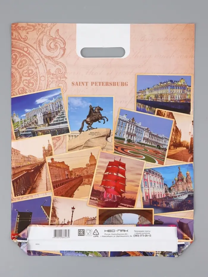 Пакет "Городская архитектура, полиэтиленовый с вырубной ручкой, 38х47 см, 60 мкм