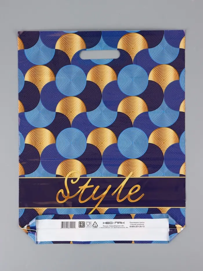 Пакет "Золотой стиль , полиэтиленовый с вырубной ручкой, 38х47 см, 60 мкм