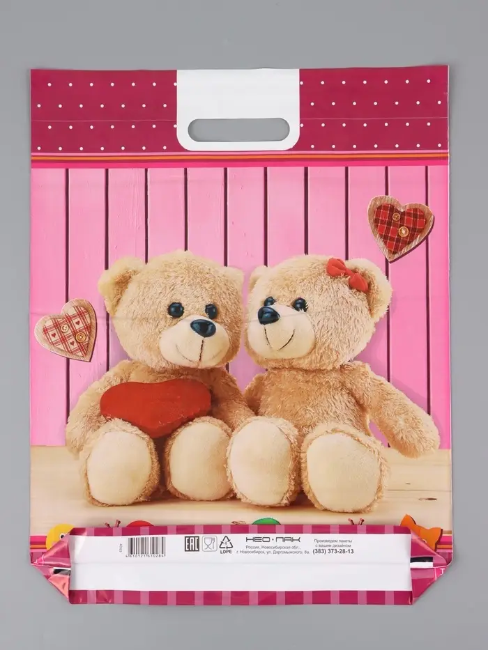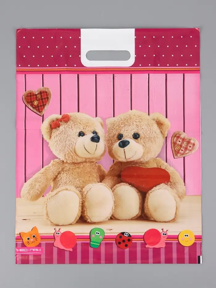 Пакет "Мишутки , полиэтиленовый с вырубной ручкой 38х47 см, 60 мкм