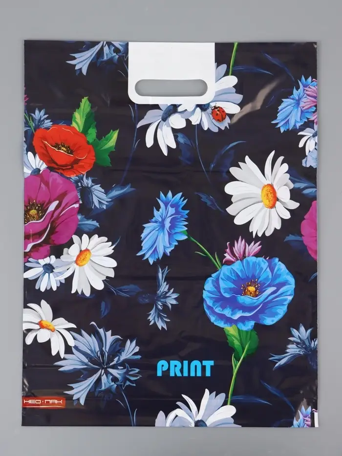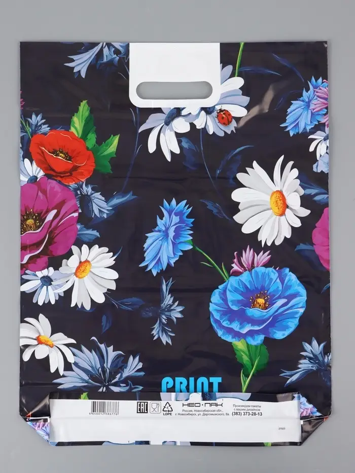 Пакет "Полевые цветы , полиэтиленовый с вырубной ручкой, 38х47 см, 60 мкм