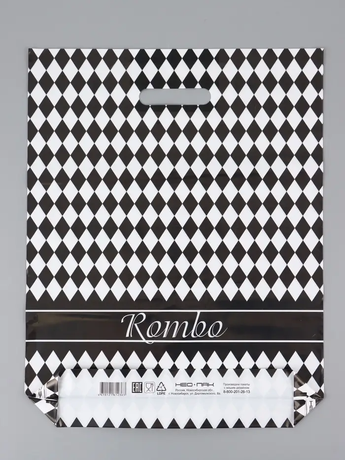 Пакет "Ромб, полиэтиленовый с вырубной ручкой 38х47 см, 60 мкм