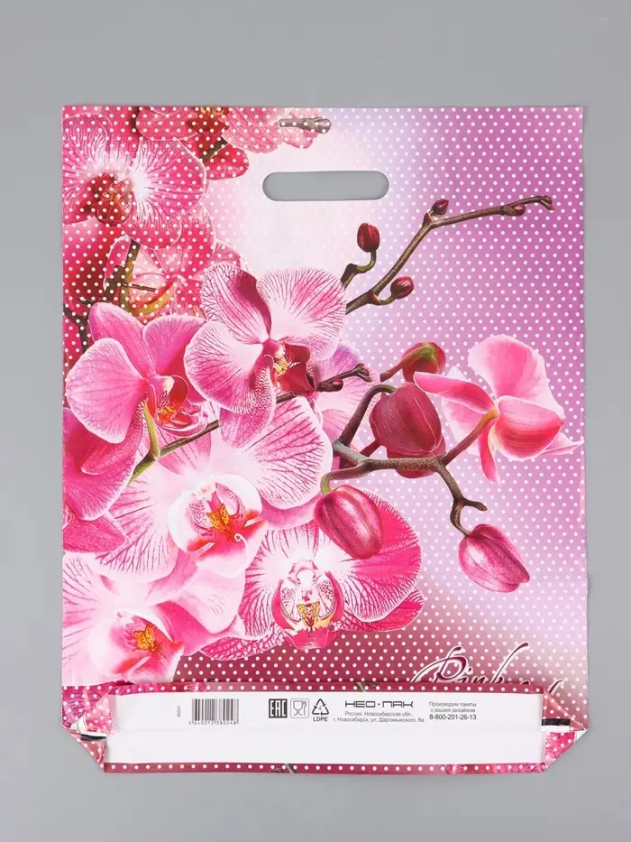 Пакет "Орхидея розовая, полиэтиленовый с вырубной ручкой, проруб. 38х47 см, 38х
