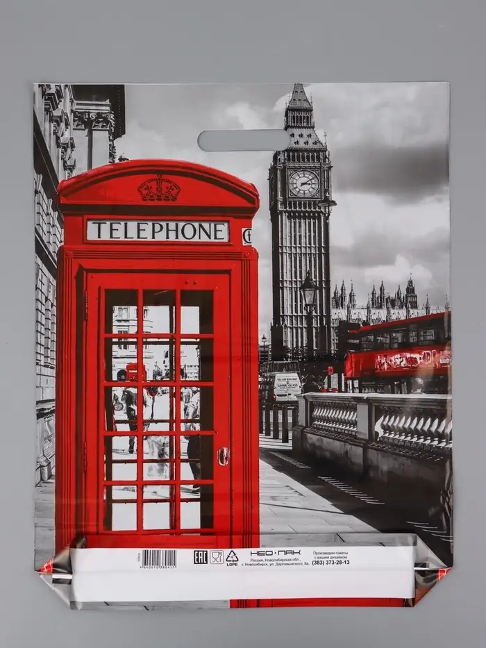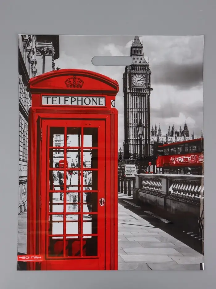 Пакет "Лондон, полиэтиленовый с вырубной ручкой 41х51 см, 80 мкм