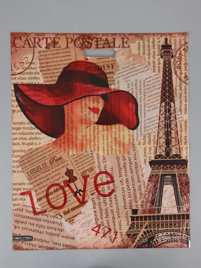 Пакет "Дама в шляпе, полиэтиленовый с вырубной ручкой, 50х60 см, 100 мкм